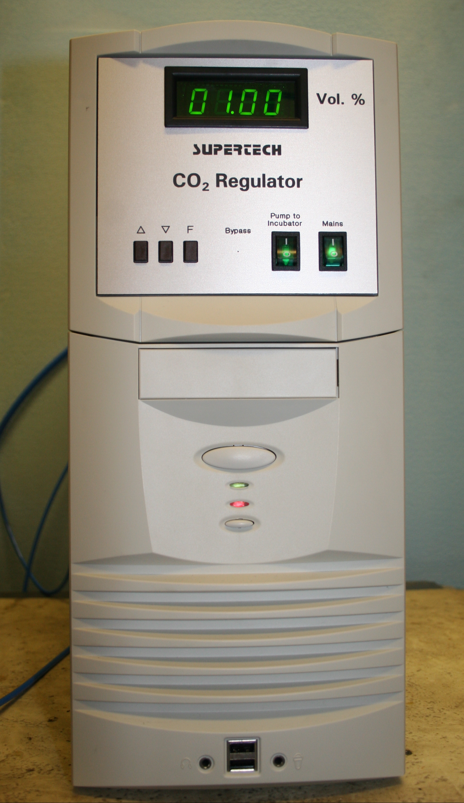 This unit can be used either with the Stage Incubator manufactured by Supertech Instruments or to supply carbogene gas into any other 3rd party incubator.
